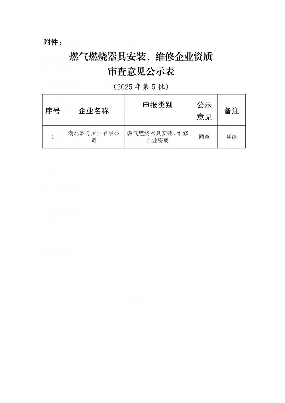 附件:燃气燃烧器具安装、维修企业资质审查意见公示表(2025年第5批).pdf
